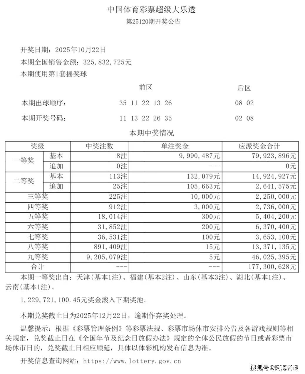本期计奖后,有12.3亿元奖金将转入下期奖池。请务必注意,本期兑奖截止日期为2025年12月22日,过期则奖金作废。