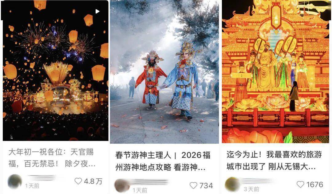 以财神为主的中式神仙NPC互动、以打铁花为主的非遗表演,以及以鱼灯为主的灯会正在成为今年春节新中式乐园的三件套。数据显示,仅在节前的1月26日至2月8日,鱼灯巡游、簪花围、打铁花的抖音团购销售额比去年节前增长890%、436%、102%。